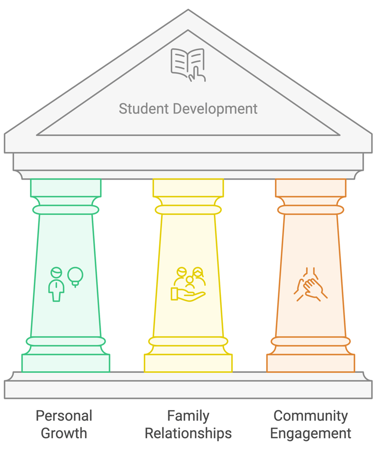 Our goal is to help students grow into community leaders by focusing on their personal growth, emotional understanding, and helping others. We focus on three main areas: Myself, My Family, and My Community.